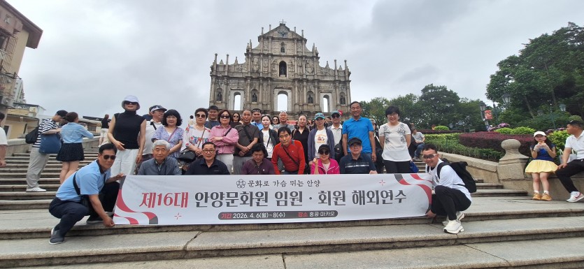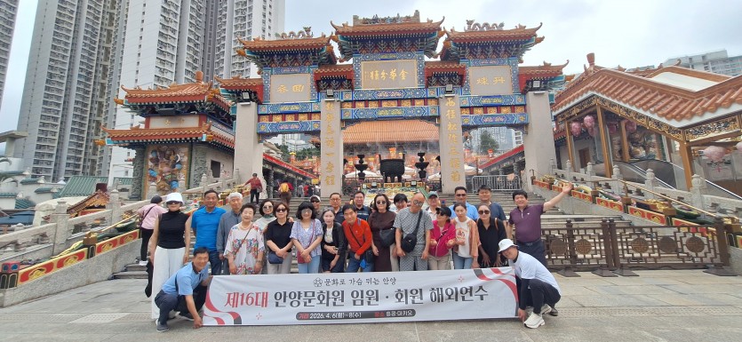 제16대 안양문화원 임원.회원 해외연수 페이지 정보 작성자 최고관리자 댓글 0건 조회 21회 작성일 26-04-13 11:24 본문 제16대 안양문화원 임원.회원 해외연수일 시 : 2026. 4. 6.(월) ~ 4. 8.(수)장 소 : 홍콩, 마카오 목록 다음글민계식 만안구청장과의 간담회 개최 26.04.01 댓글목록 댓글목록 등록된 댓글이 없습니다.